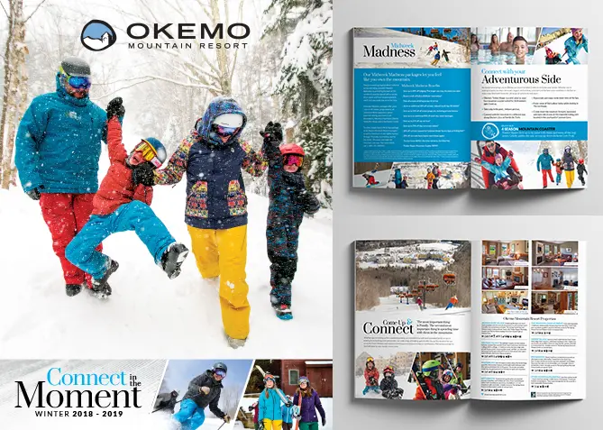 A cornerstone of the resort's marketing has alway been their annual seasonal Resort Guide. The 16 page booklet covers all of the features and services Okemo offers. We used this guide to establish the baseline design, graphics, and mesaging for the rest of that winter's creative campaign. The look and feel had to be fun and appeal to the whole family. Bright colors and family specific photography, coupled with a suite of custom "accolade" icons brought the guide and campaign to life.