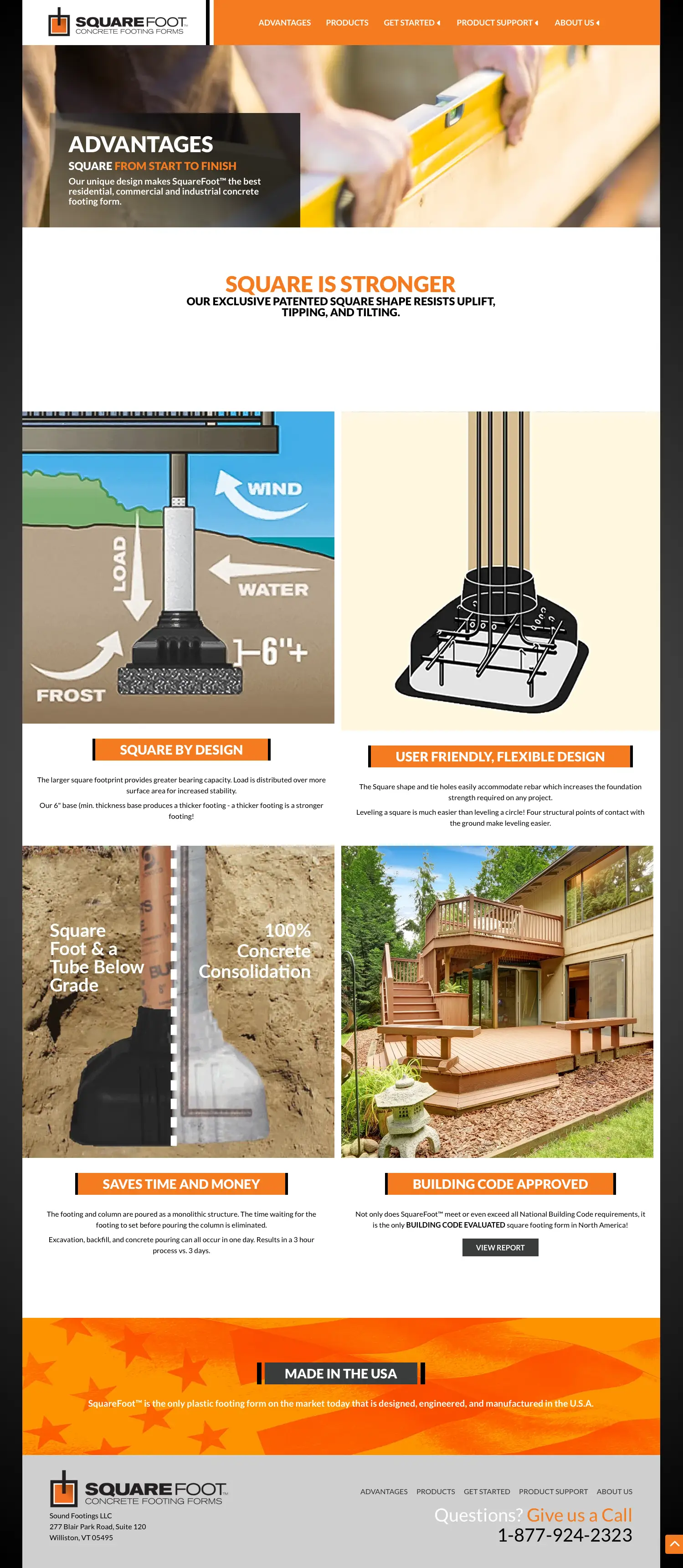 We implemented on-page SEO best practices to improve discoverability among builders and contractors searching for reliable footing form solutions. A lightweight content management system (CMS) enables SquareFoot to update product specs and support materials as their offerings evolve. Hosted on our ultra-fast servers, the site delivers strong performance, reinforcing the product’s reputation for reliability and efficiency.
